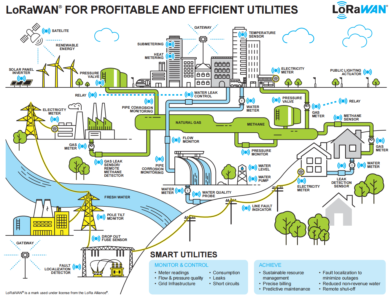 LoRaWAN在公用事业中的应用示意图 图源:LoRa联盟官网