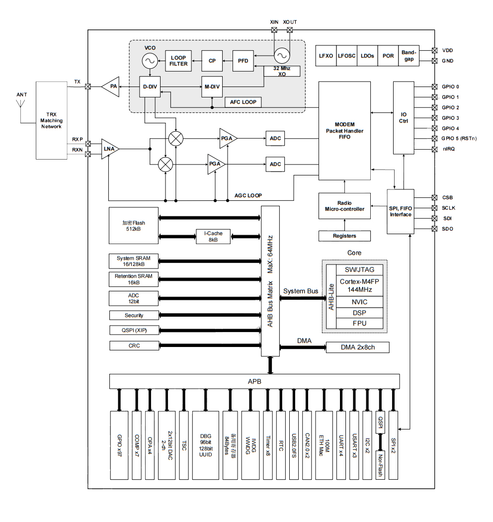 CMT2392F512-芯片内部功能系统框图